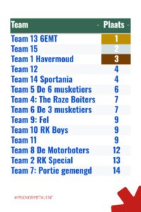 We presenteren je met trots het podium: Goud voor de toppers van 6 Elektromechanische technieken. Zij toonden zich de absolute primussen! Zilver was voor Team 15. Brons ging naar de kleppers van Team 1 Havermoud. Proficiat aan alle leerlingen! Jullie hebben bewezen dat er heel wat talent in onze school zit.