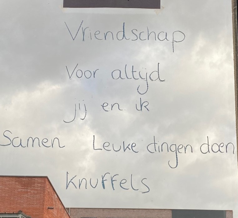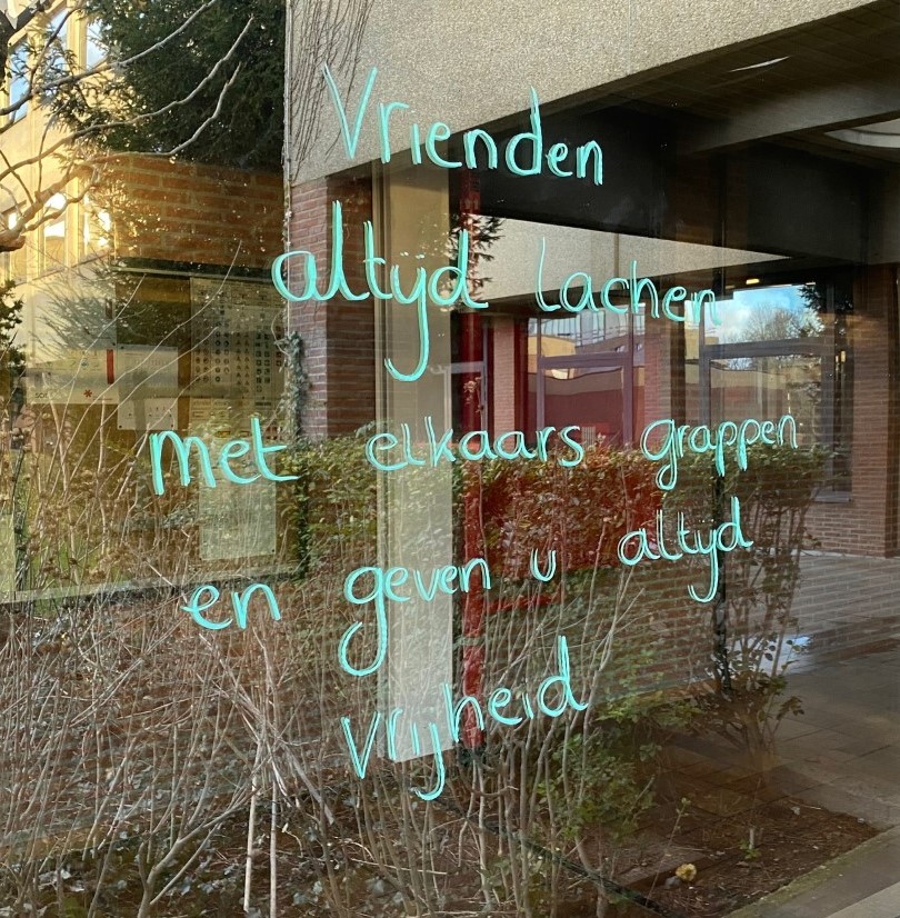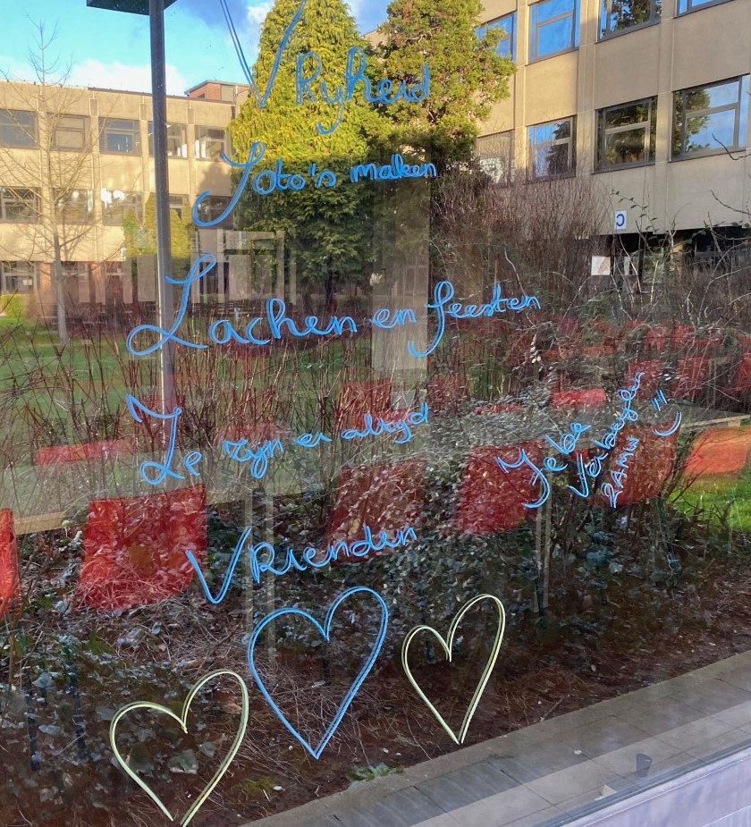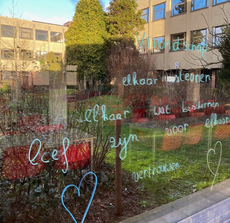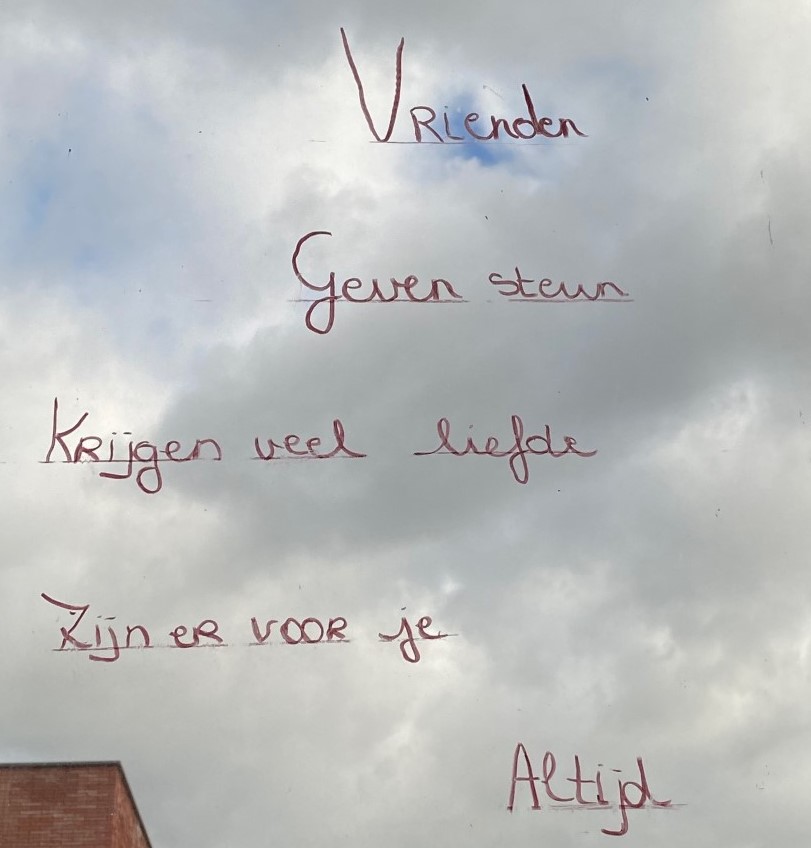 De eerste graad schreef over vriendschap en liefde. Enkele mooie gedichten kwamen op de ramen, zodat we er nog lang van kunnen genieten.